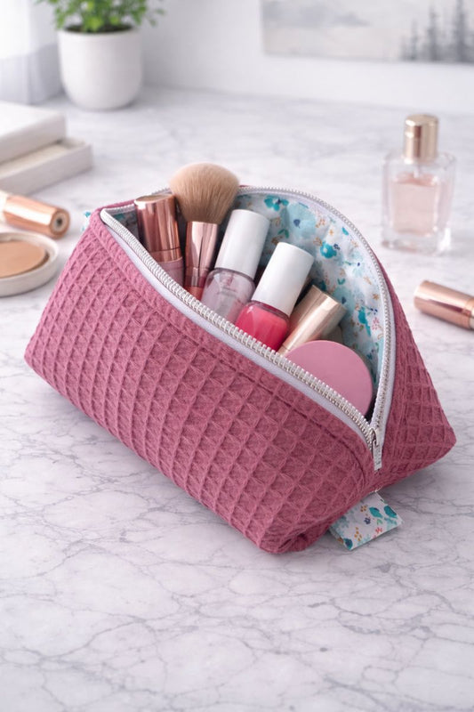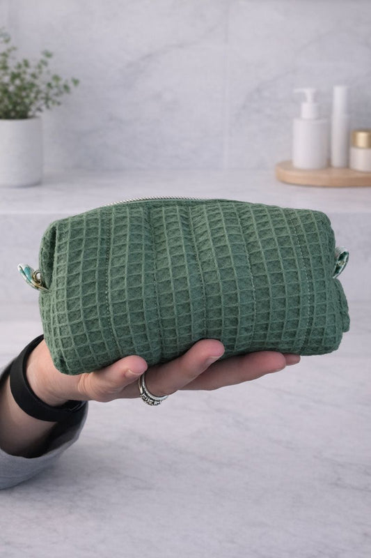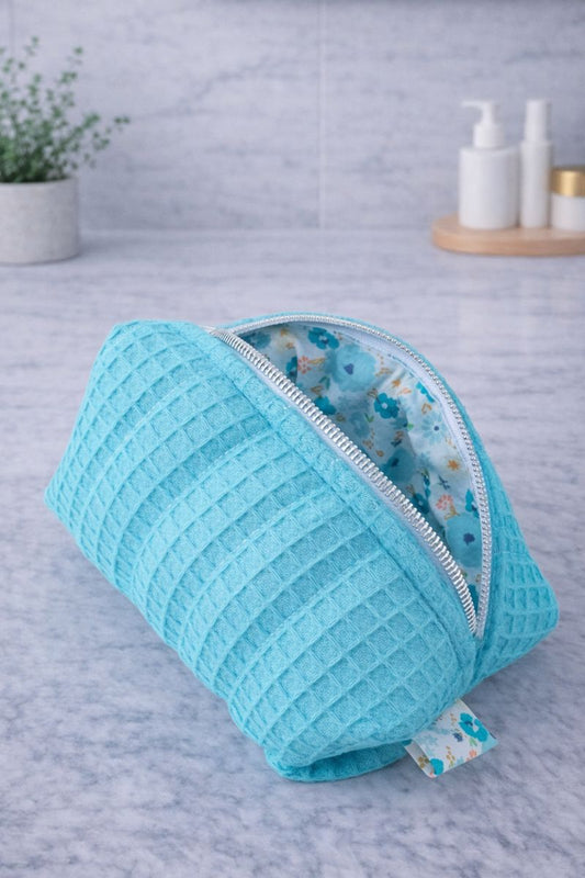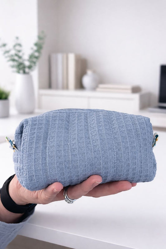 Dusty Blue Quilted Makeup / Cosmetic Bag