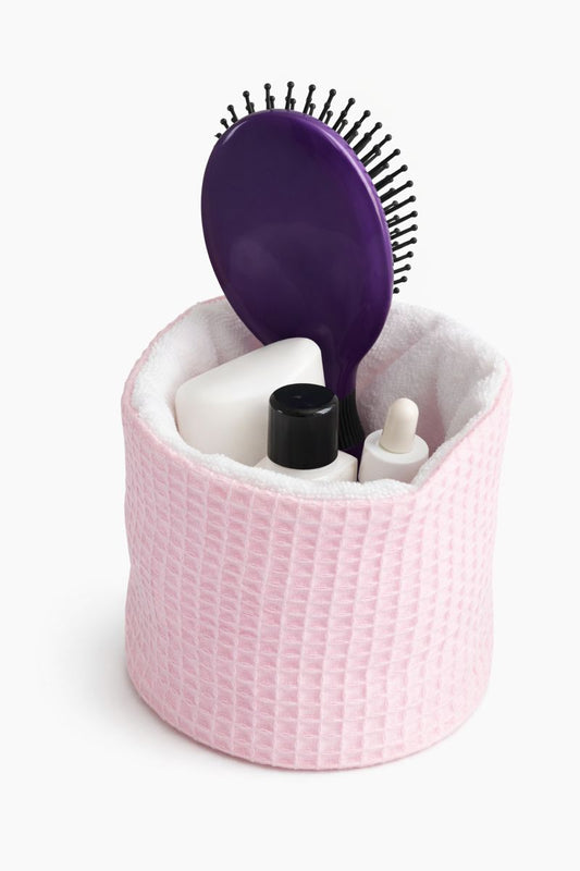 Makeup Organizer Puff Bucket Bag – Floral Terry Makeup Organizer, Cute Vanity & Toiletry Organizer, Travel Pouch for Cosmetics